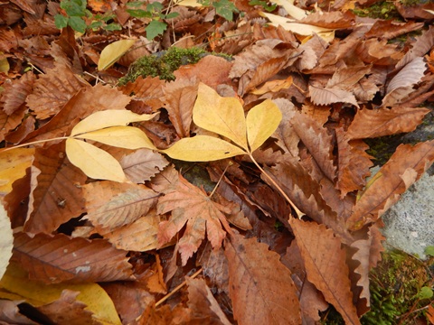 目を惹く植物こそあまり多くありませんでしたが、絨毯のような落葉を踏みしめながら