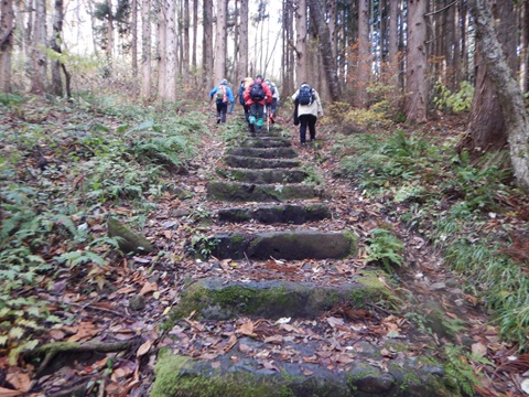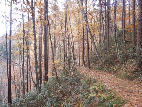 滝を見終え、広葉樹林の中の道をしばらく歩きます。