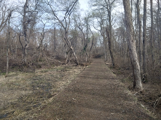 そのまま進んでいくと両脇に湿地のある道につきます。