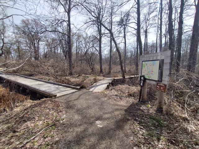 サイトステーションからレンゲ沼を反時計回りで進んでいくと、中瀬沼探勝路との分岐にたどり着きます。