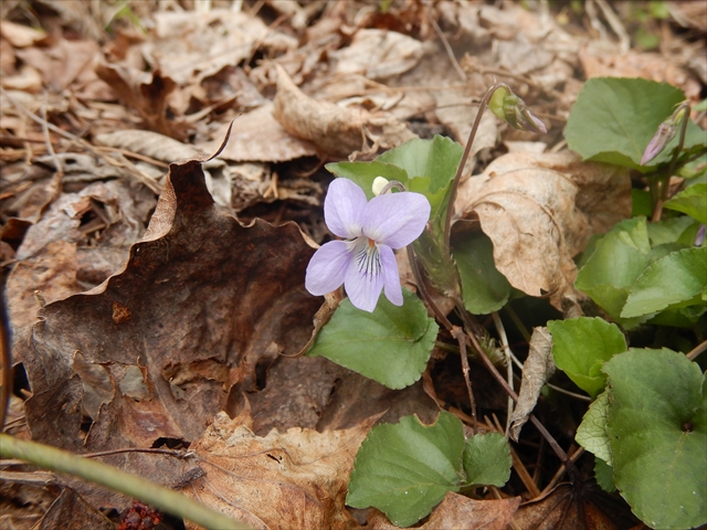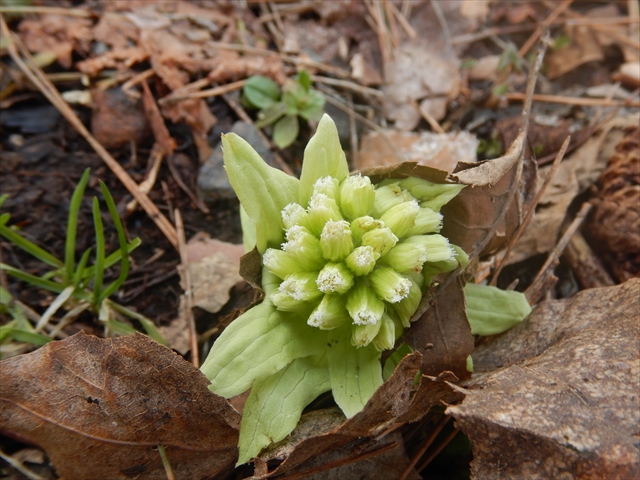 春一番に咲きます。まだ葉っぱが丸まっていました。