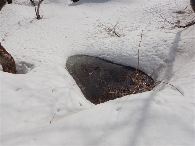 *レンゲ沼は溶け始めているので、氷の上に登らないでください。