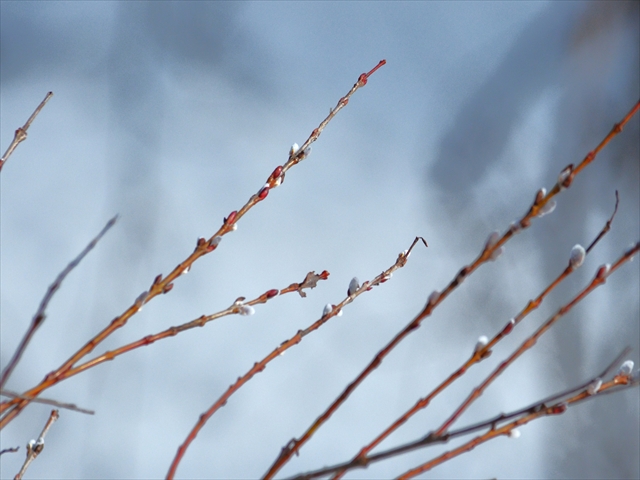 冬芽の殻を脱いだ花穂(花芽)がもこもこしています。