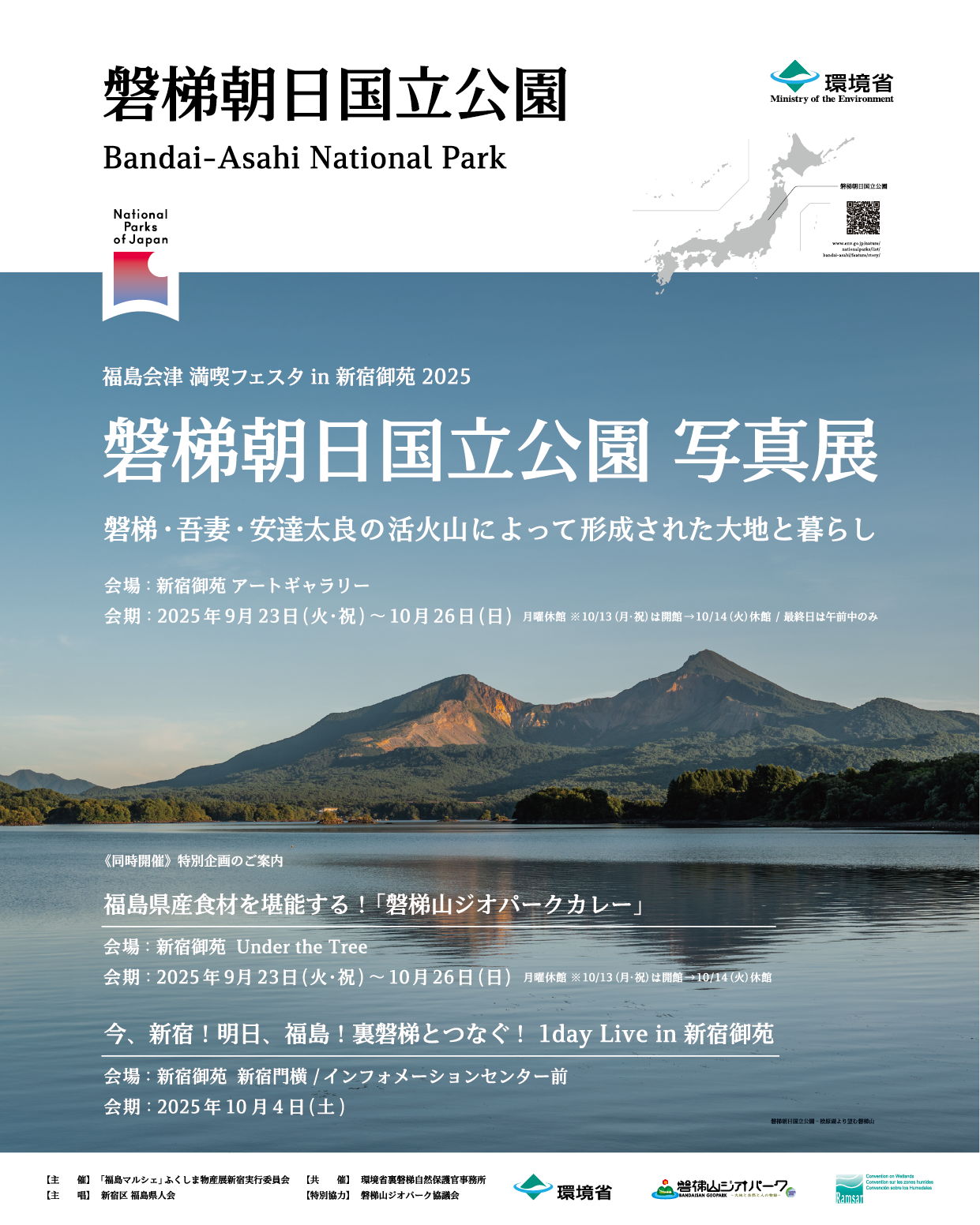 福島会津満喫フェスタin 新宿御苑2025の一環として、新宿御苑のアートギャラリーで磐梯朝日国立公園の写真展を開催します。