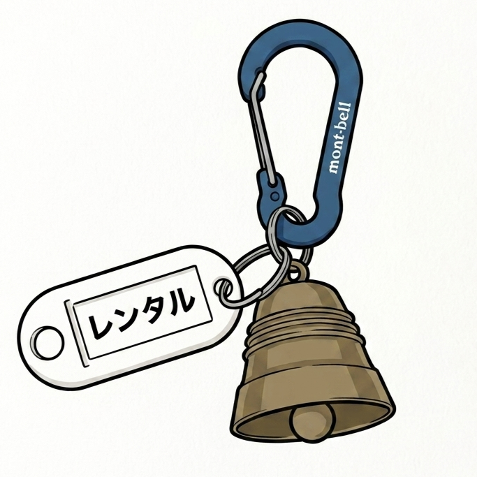 ▲タグがついた、共通のクマ鈴をレンタルしています
